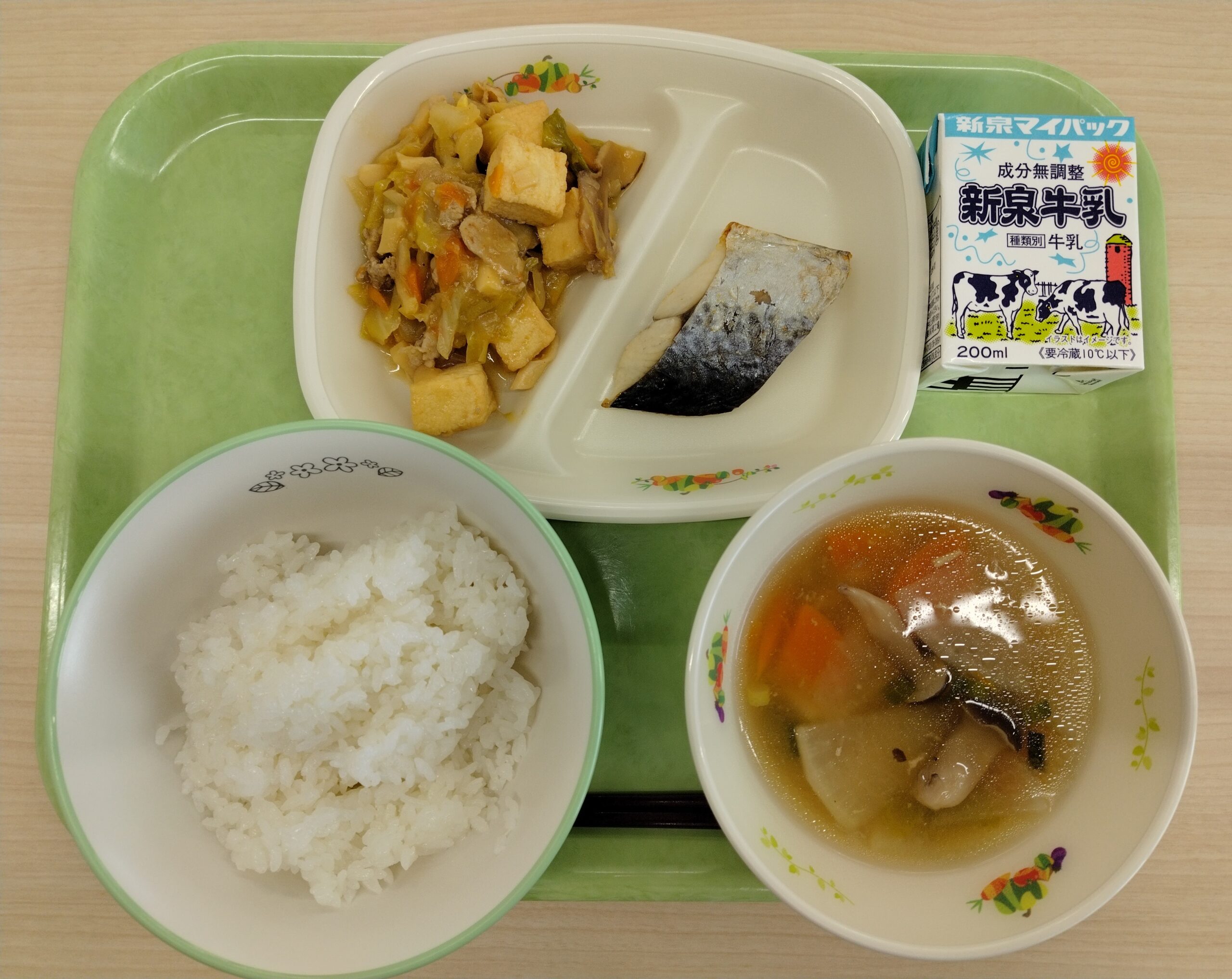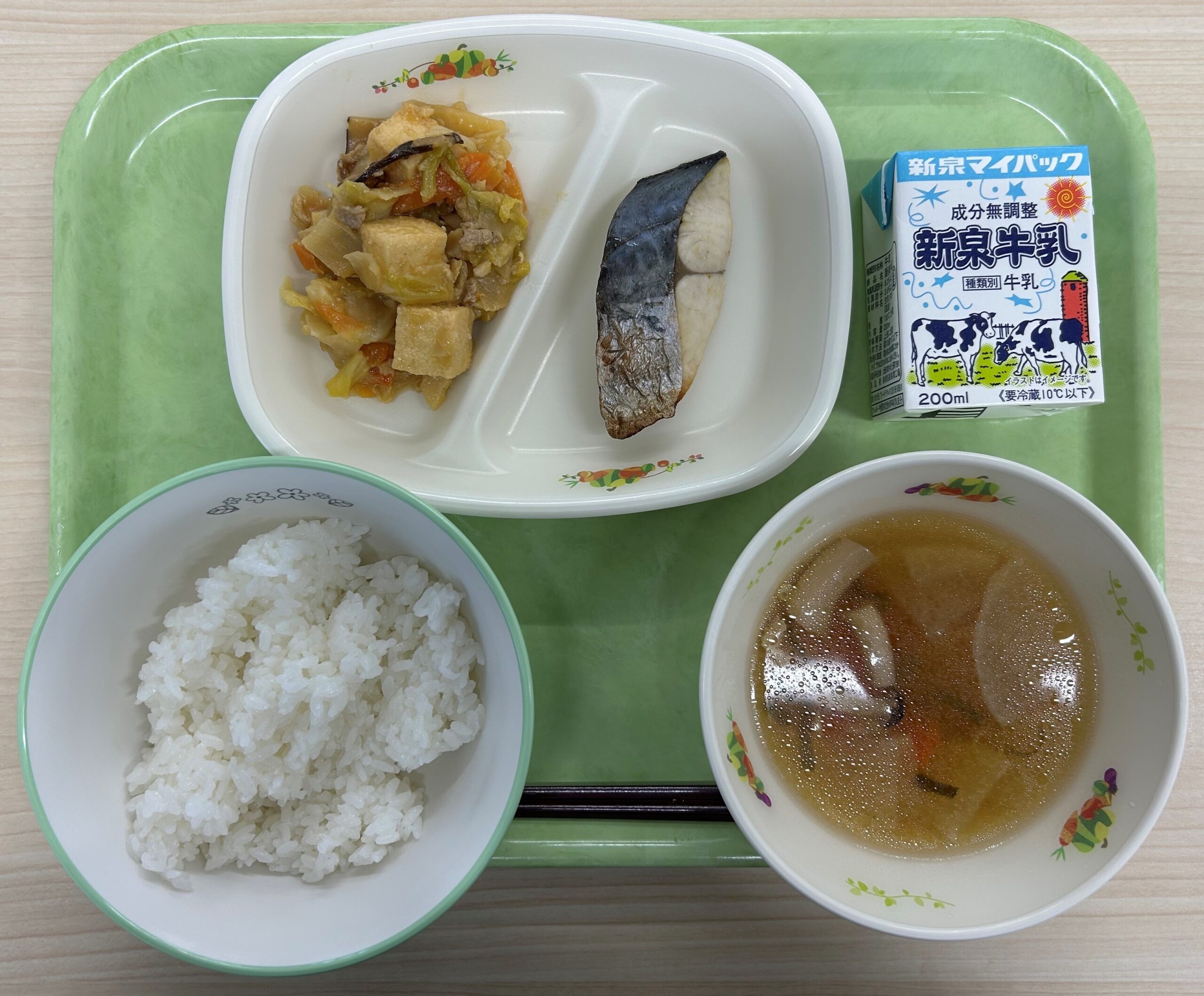 ご飯 牛乳 さわらの風味焼き 厚揚げとキャベツのみそ炒め のっぺい汁
