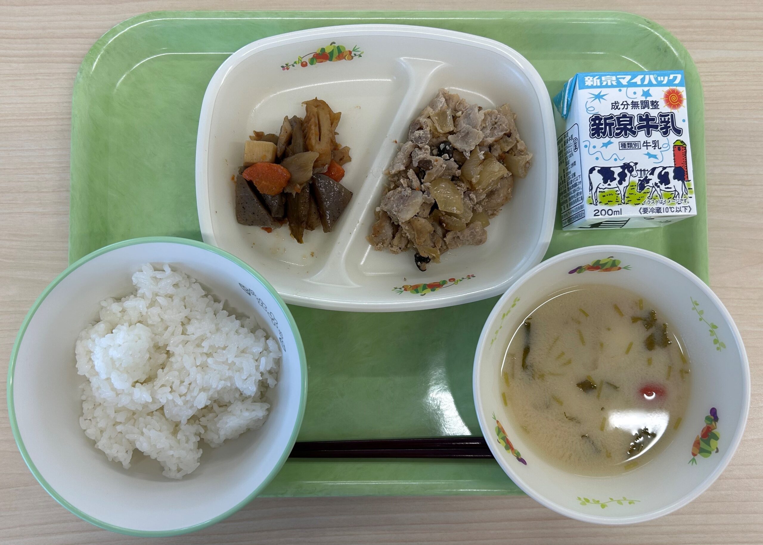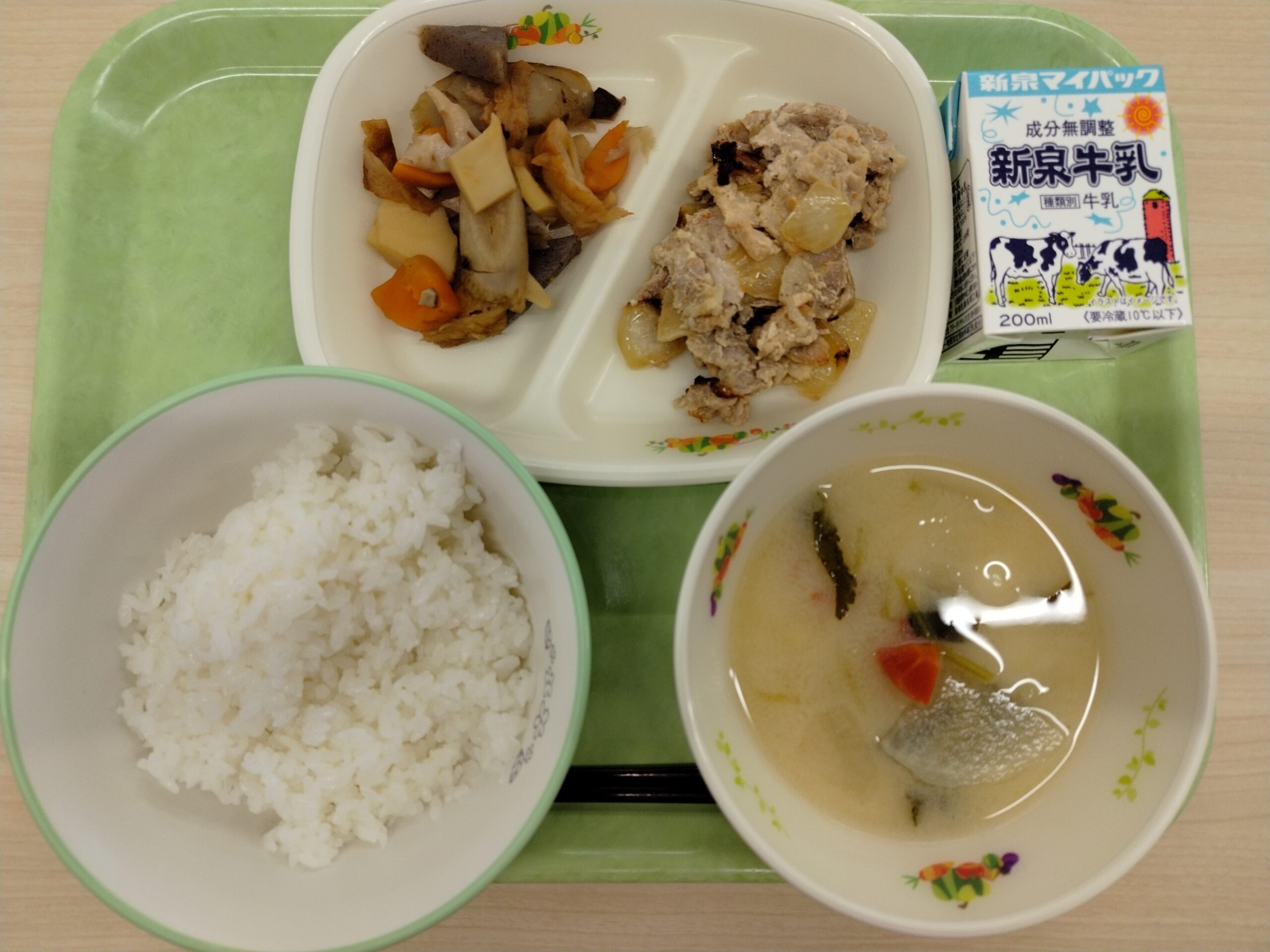 ご飯 牛乳 豚肉の一味焼き 煮しめ みそ雑煮