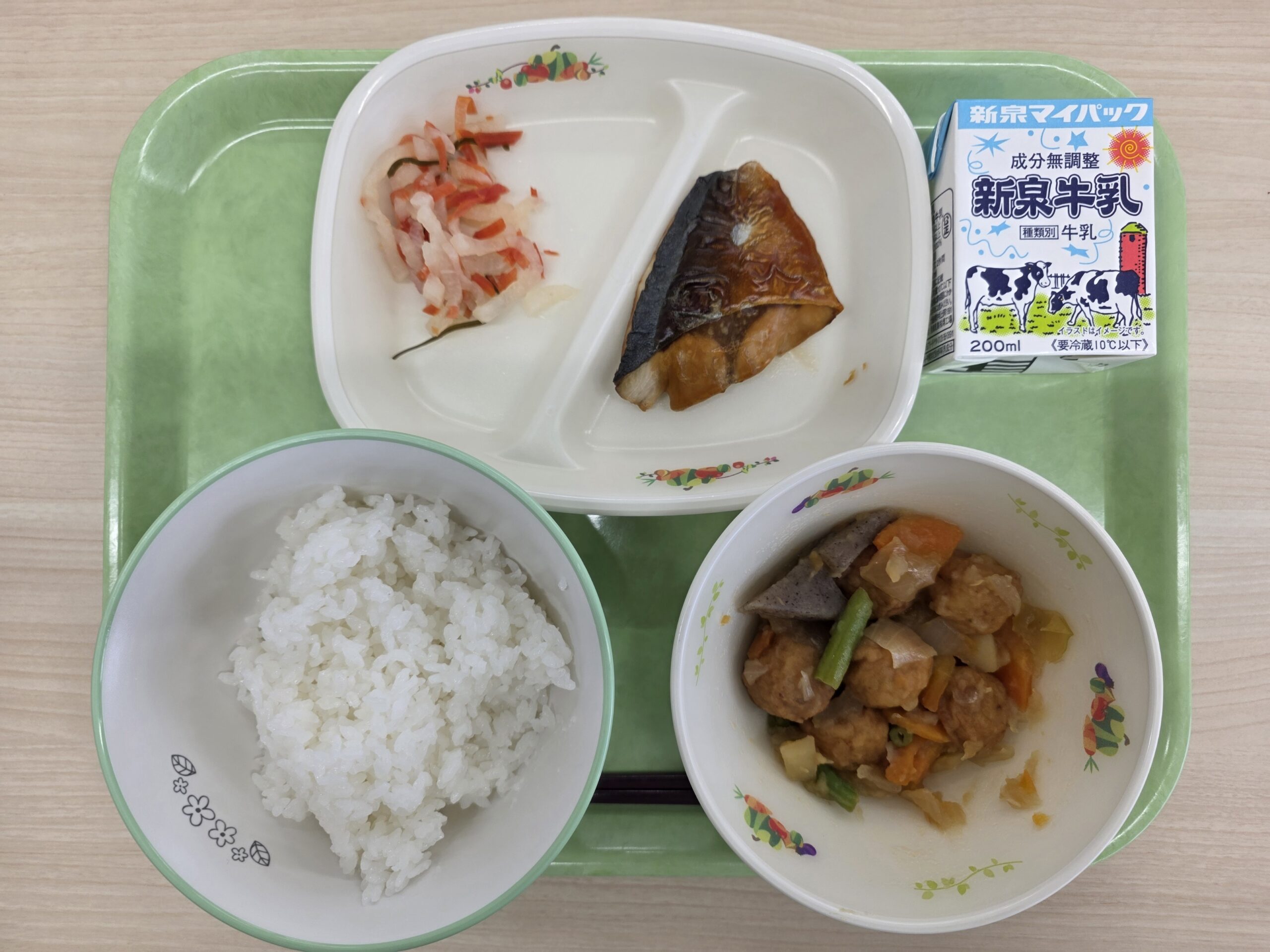 ご飯 牛乳 ぶりの照り焼き 紅白まなす 魚菜天と野菜のうま煮