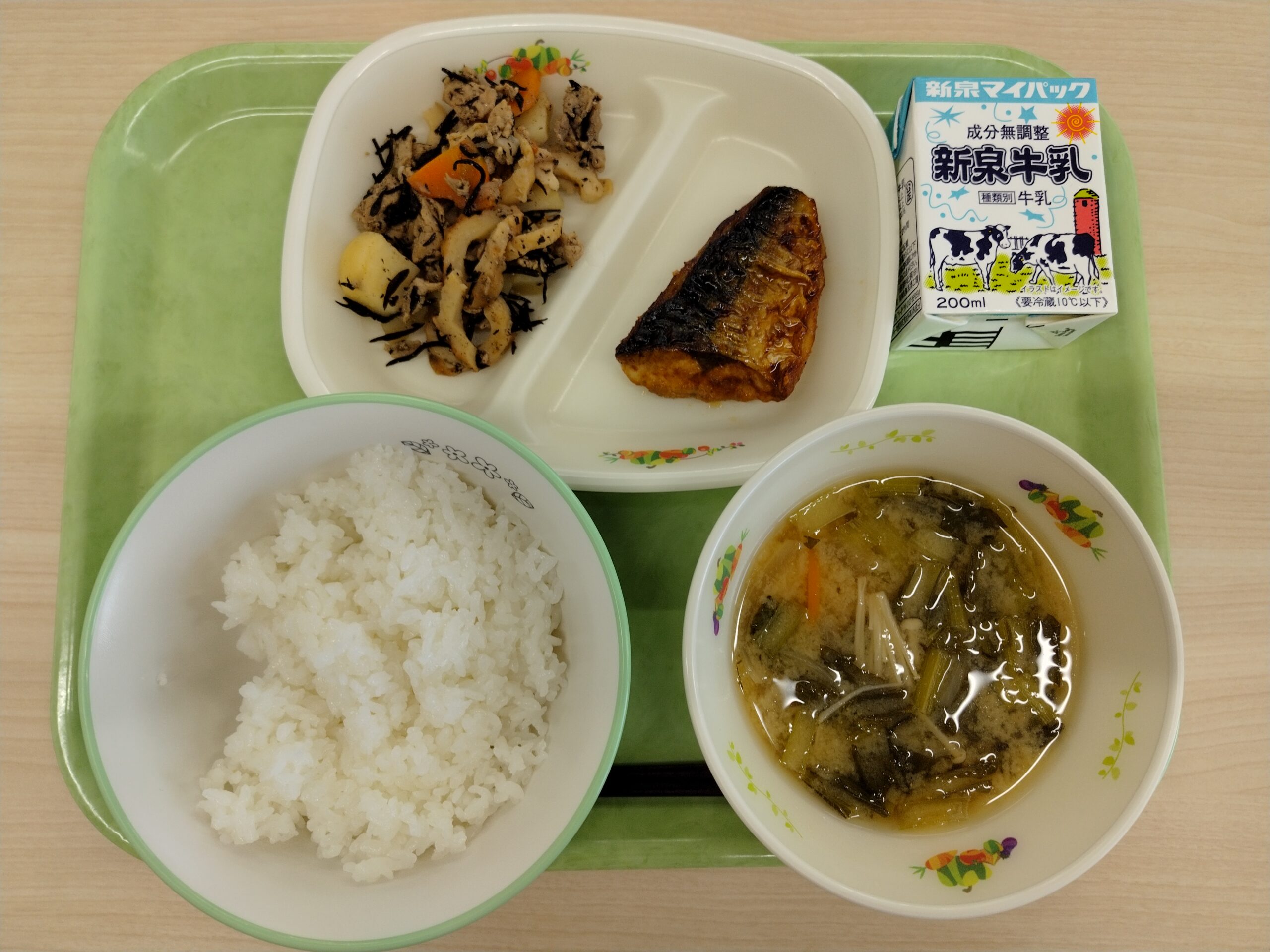 ご飯、牛乳、さばのおろしだれ、じゃがいものいそ煮、小松菜のみそ汁